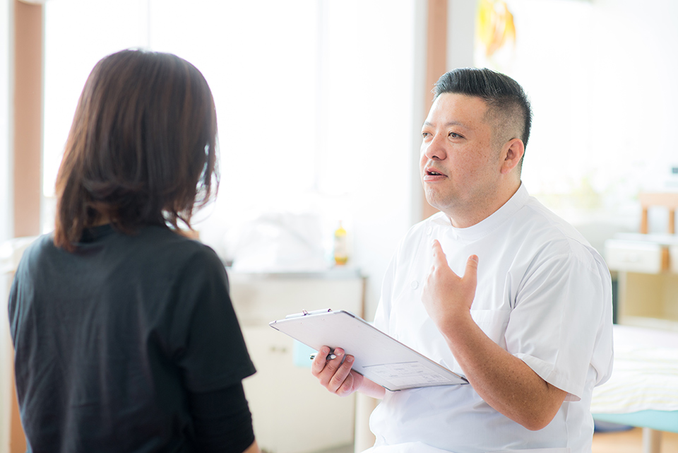 どうしてケガをしたのか、どこが原因で痛いのかなど、今自分がどのような状態なのか把握することが治療をするうえで大切になります。そのために、患者様からお聴きした話や身体の状態から痛みの原因を模索し、それを患者様と共有しながら治療をしています。