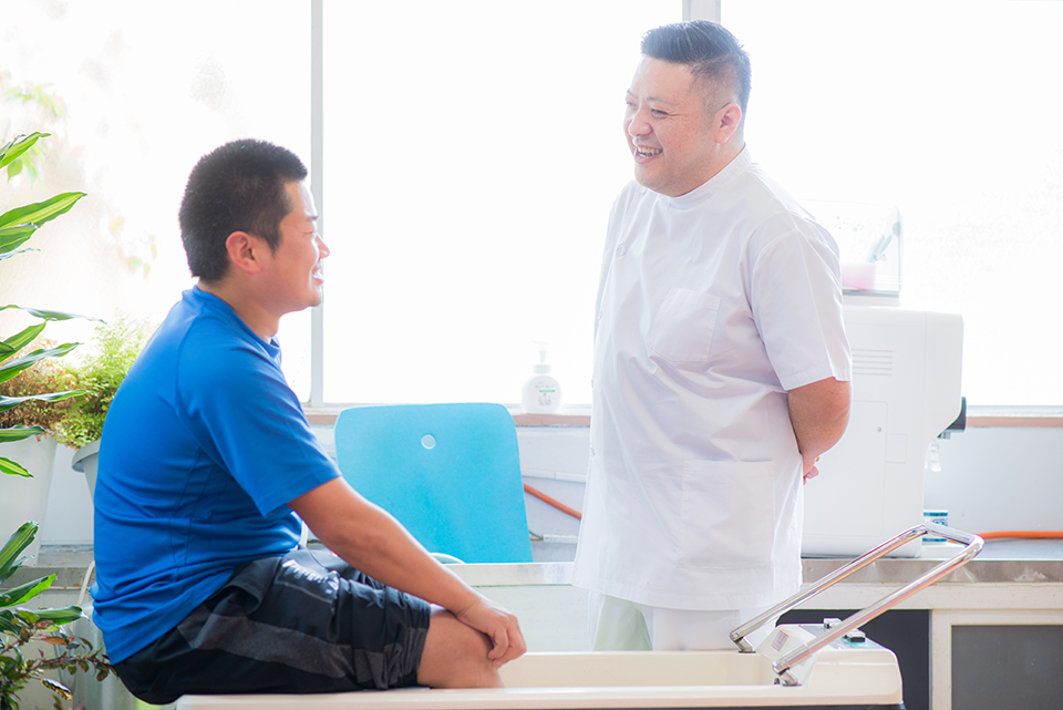 どうしてケガをしたのか、どこが原因で痛いのかなど、今自分がどのような状態なのか把握することが治療をするうえで大切になります。そのために、患者様からお聴きした話や身体の状態から痛みの原因を模索し、それを患者様と共有しながら治療をしています。